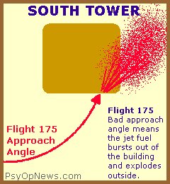 Tower impact site had been right in the center of the tower (2). The entire fuel load and flotsam was dumped deep inside