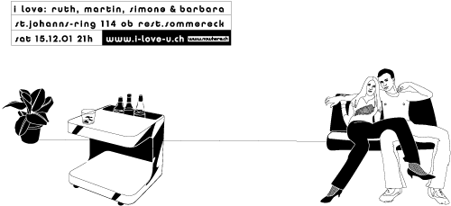----------------------------------------------------- ich lieb dich noch ich lieb dich wieder party five years http://www.i-love-u.ch saturday 15. dez. 21.00 CET st.johannsring 114 basel - switzerland ----------------------------------------------------- thoughts are free-------------------free of thoughts (by D.Bowie & algorythm/permutation) just remember love will clears the soul lovers never lovers never love will clean you'll be free just remember loose cause they are free forget you'll be free just remember love will clears they lovers never lose cause they are free of thoughts unpure and of thoughts unkind gentleness clears the soul love cleans the mind and makes it free. are free just remember loose cause they are free of thoughts unkind gentleness clears they are free of thoughts unpure and make your mind gentleness clean you'll be free of thoughts unpure monthly appearing e-zine for multimedia art, monthly changing subject, no-commerce platform for cyber-artists, photographers, screen-designer, e-musicians, movie-makers, comic-developers... visit http://www.i-love-u.ch http://www.i-love-u.tv our snailmail: i love u ezine kellergaesslein 7 CH-4051 Basel Switzerland / Europe die redaktion see editorial at http://www.i-love-u.ch To unsubscribe, write mailto:response@i-love-u.ch (subject: unsubscribe) Next month's theme: neighbours. feel free to join us and to send contributions to response@i-love-u.ch