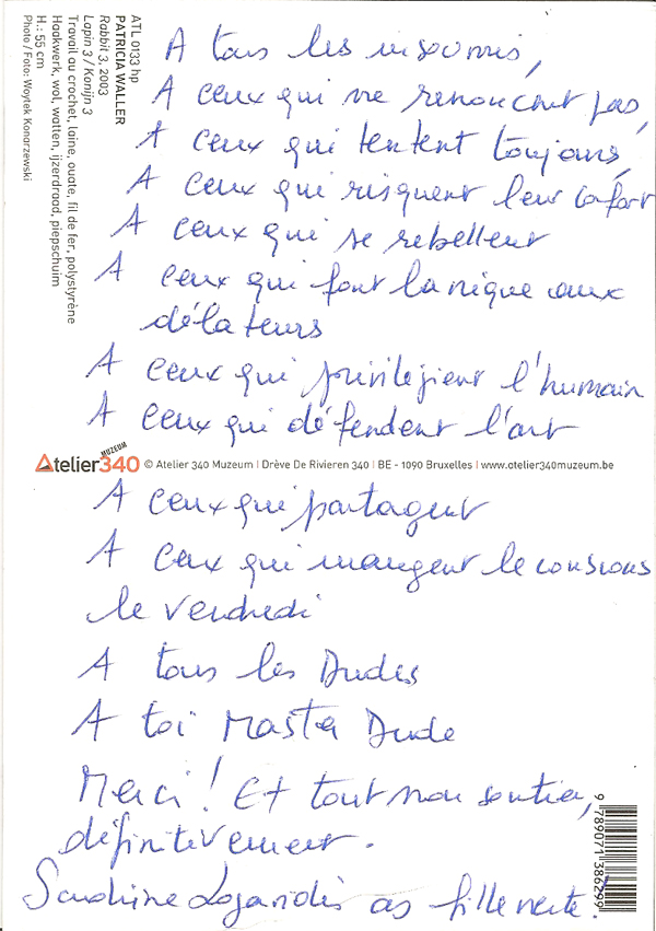 Bonjour, Pour fêter la sortie locale du 3ème acte de 2000 What The Fuck, une soirée au Sans Souci. Quelques lignes sur les précédents opus : « Il s’est créé sa propre dynamique, à hauteur d’homme. Il a prit le temps de bidouiller seul chez lui un son très perso, comme une sorte de Daniel Johnston electro. Phoenix Hellcat pour apar.tv « Alan Vega venait des arts plastiques, ThTh ça tient plutôt du « web2merde », mais il y a la même volonté de trouver et de tenir l'organique, le truc avant tous les autres. » Louis-Stéphane Ulysse pour Le BonBon Nuit « Thierry Théolier est un cas, autant vous le dire tout de suite. Dilettante, performer cultivé et pamphlétaire virulent... » Nicolas Metzler pour Lords of the rock « C’est toujours porté par une intuition du monde musicale et textuelle oxymorique. Dans un même élan électro pété, l’égocentrisme tend une main fraternelle, le désespoir revenu de tout laisse déborder sa joie, le nihilisme expose un ordre divin » Cyril Lener pour Technikart Jeudi 7 juillet « 2000 WTF » 22 h > 1 h 30 https://www.facebook.com/events/624278761063008/ Merci de votre attention en espérant vous voir demain soir... Dudesquement. TH PS en PJ : Verso d'une carte postale envoyée par Fille Verte Des Fjords pour commander le 3ème acte de 2000 What The Fuck. |