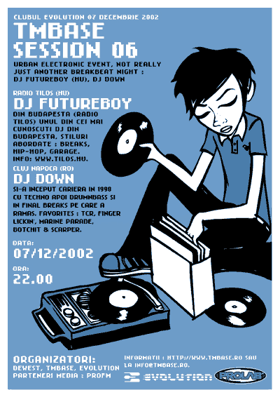 _evenimente TMBase: _In 7 Decembrie clubul Evolution(Timisoara): TMBASE SESSION 06 : Cu Dj Futureboy (Radio Tilos Budabesta), Warmup : Dj Down (Cluj) _Vineri 6 Dec. ART CLUB (Timisoara) - SEDUCTION 2 - Ufo vs. Alex S (afisul evenimentului din 6 dec. este atasat acestui email) http://www.tmbase.ro